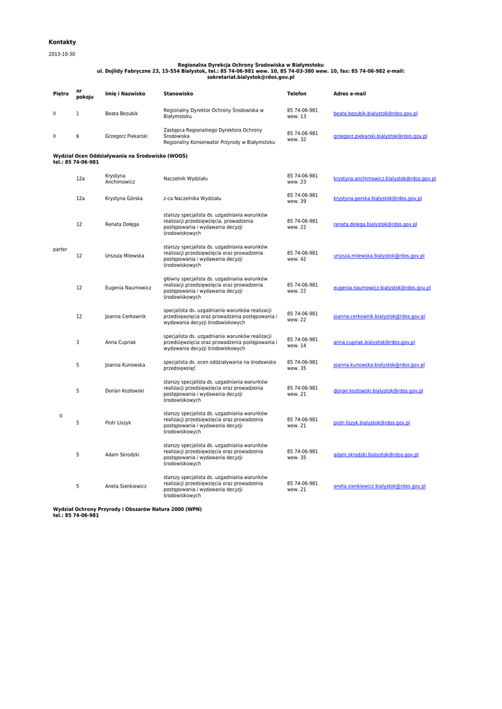 Kontakty - Regionalna Dyrekcja Ochrony Środowiska w Białymstoku