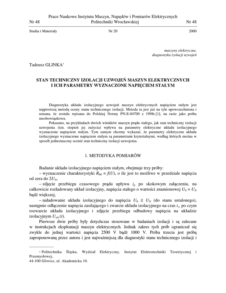 Tadeusz GLINKA* STAN TECHNICZNY IZOLACJI UZWOJEŃ