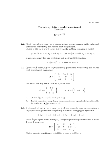 Podstawy informatyki kwantowej Zestaw 2 grupa IS