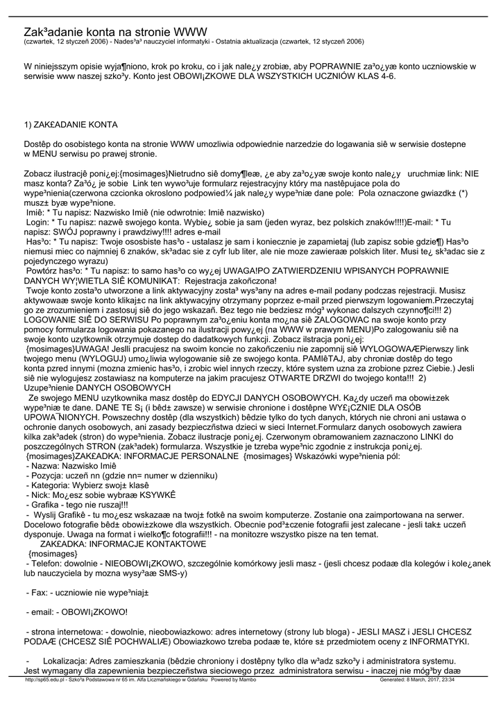 W niniejsszym opisie wyja¶niono, krok po kroku, co i jak nale¿y zrobiæ, aby POPRAWNIE za³o¿yæ konto uczniowskie w