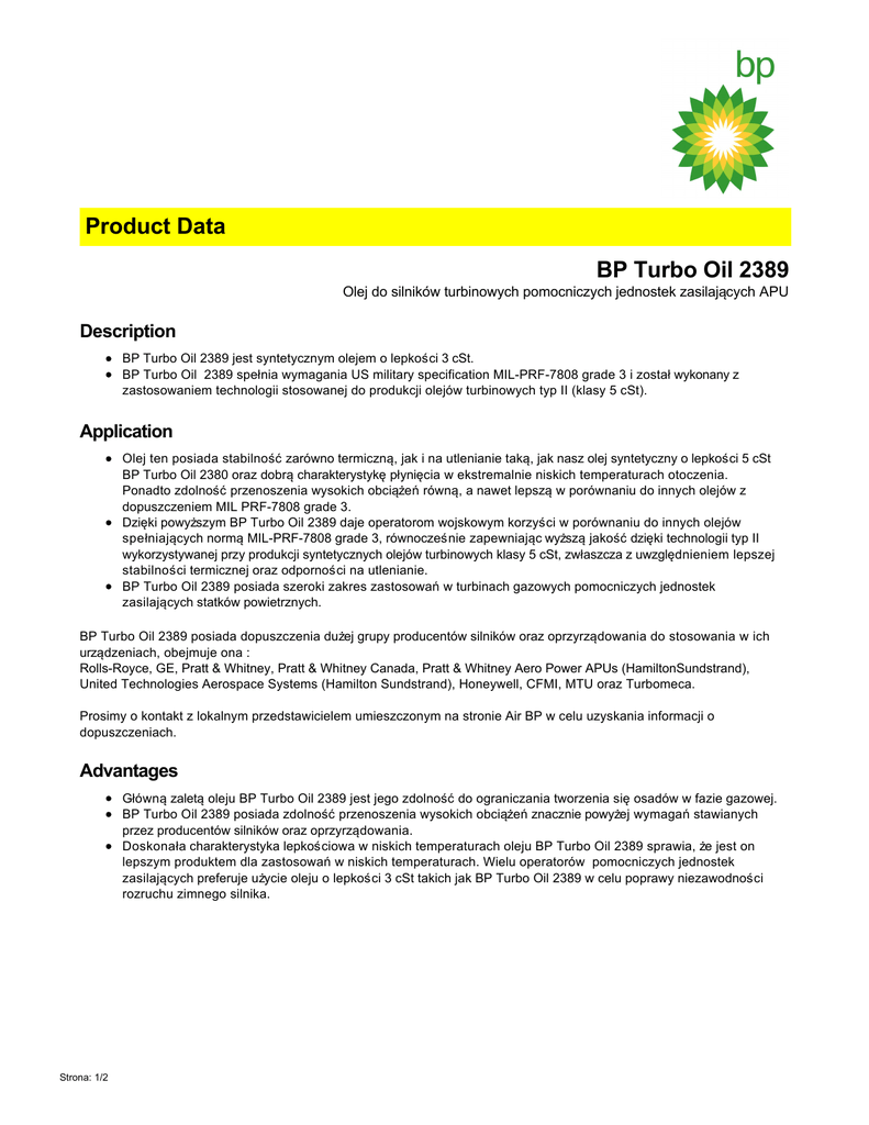 Product Data BP Turbo Oil 2389