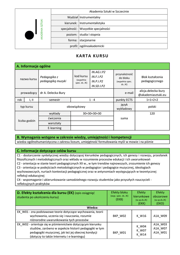 karta kursu - Akademia Sztuki w Szczecinie