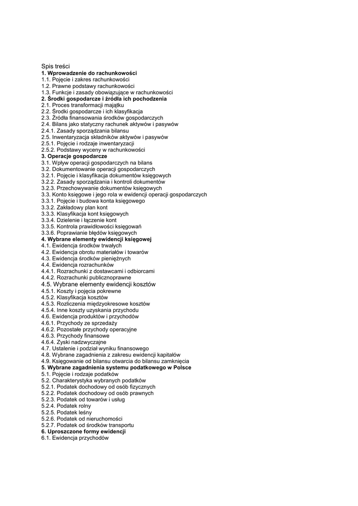 Agrobiznes.Podstawy rachunkowości.Spis treści