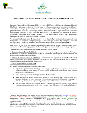 Regulamin Programu dotacyjnego Funduszu Kropli Beskidu 2010