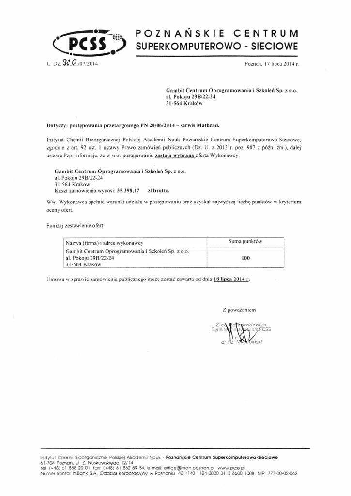 wyniki_17072014 - Poznańskie Centrum Superkomputerowo