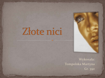 Wykonała: Tompolska Martyna Gr. 39z Złoto było wykorzystywane w lecznictwie już w starożytności. Stosowane było w formie sproszkowanej, płatków, nalewek. Starożytne księgi podają, iż złoto jest symbolem nieśmiertelności. Według badań słynna Kleopatra i Nefretete na długo zachowały swą młodość właśnie dzięki złotym niciom. W ich ciele odkryto drobne kawałki czystego złota. Jest to nieinwazyjna metoda pozwalająca odmłodzić ciało i zatrzymać starzenie skóry bez potrzeby przeprowadzania bolesnych operacji plastycznych. Sam zabieg polega na implantacji pod skórę właściwą złotych nici, które tworzą stelaż dla wiotczejących mięśni, napinają je i wygładzają skórę w miejscach poddanych zabiegowi. Złotych nici nie implantuje się w bruzdy nosowo – wargowe, gdyż może zmienić się mimika twarzy. Umieszczając złote nici w okolicy policzków, unosząc je poprawia się owal twarzy i spłyca w ten sposób owe bruzdy. Złote nici wykonane są ze złota o najwyższej próbie 999,99, o średnicy 0,10 mm. Każda nić ma długość 25 cm i zakończona jest igłą jednorazowego użytku. Każda też znajduje się w otoczce nici chirurgicznej o parametrach 3/0 USP (do zabiegów na twarzy) i 6/0 USP (do zabiegów na ciało). Otoczka ta w terminie 2-3 miesięcy ulega rozpuszczeniu. Dzięki niej lekarz może wprowadzić nić bezbłędnie we wcześniej wybrane miejsce, ponieważ sama ZŁOTA NIĆ pozostaje usztywniona. Specjaliści twierdzą, iż złoto może pozytywnie wpływać na biopole człowieka, pochłaniając negatywną energię, a także dobroczynnie działać na dotknięte chorobą organy. Naukowcy dowiedli, że wokół złota tworzą się młode komórki, które przyspieszają proces wymiany w skórze. Złoto sprzyja nasyceniu skóry tlenem, usuwa zmęczenie, chroni przed szkodliwym działaniem zanieczyszczonego środowiska, odbudowuje komórki, nadaje skórze blask, a także będąc ekologicznie czystym materiałem, bez przeszkód przyswajane jest przez organizm. Przy tym na złoto brak jest reakcji alergicznych, nie utlenia się i nie powoduje odrzucenia. Zabieg złotych nici skutecznie powoduje wzrost ilości elastyny w skórze. Ponadto złoto ma działanie stymulujące produkcję nowych naczyń krwionośnych w skórze, co powoduje lepsze jej dotlenienie i odżywienie, niwelowane są procesy starzenia, wygładzają się zmarszczki, znika zwiotczenie, zmniejszają się fałdy, zwiększa elastyczność, poprawia się koloryt cery, normalizuje się praca gruczołów łojowych, znika tak często widoczna siatka naczyń krwionośnych. U osób, które poddały się zabiegowi przed 40 rokiem życia, działanie nitek jest profilaktyczne i ma za zadanie głównie zachowanie młodego wyglądu, ewentualnie zniwelowanie takich dolegliwości jak bruzdy, przebarwienia, łojotok czy rozszerzone naczynka krwionośne na policzkach. Wówczas efekt utrzymuje się do 10 lat. U ludzi po 40 roku życia zadaniem zabiegu jest odmłodzenie skóry i utrzymanie jej w tym stanie jak najdłużej. Na efekt trzeba czekać do 3 miesięcy i dłużej, ale utrzyma się on również na długi czas, bo od 7 do 10 lat. Zabieg złotych nici można powtarzać, można też wykonać każdy inny zabieg chirurgiczny po implantacji. W ciągu trwającej 40 lat praktyki stosowania zabiegu ZŁOTYCH NICI nie odnotowano żadnych skutków ubocznych. Samo złoto ma działanie antyseptyczne, odkażające i jest jedynym znanym produktem służącym do implantacji, który w 100% nie wywołuje uczuleń. Skóra wygląda dobrze już 3-4 dni po zabiegu, do 7 dni znika opuchlizna i zasinienia. 1 – 3 cena jednej nitki 1300 zł 4 – 6 cena jednej nitki 1200 zł > 6 cena jednej nitki 1100 zł Dziękuje