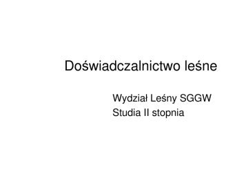 Doświadczalnictwo leśne Wydział Leśny SGGW Studia II stopnia Wykład • Analiza wariancji (ANOVA) POPULACJA PRÓBA Próbkowanie POPULACJA PRÓBA Wnioskowanie Parametr Statystyka Estymator Źródła pozyskiwania danych • Obserwacja (brak ingerencji w badany obiekt) • Eksperyment (KONIECZNOŚĆ ingerencji w przedmiot badania) – wykonanie pomiarów w sposób eliminujący wpływ czynników nieistotnych ANOVA • Analiza wariancji (ANOVA = ANalysis Of VAriance) – metoda statystyczna słuŜąca do weryfikacji hipotezy o równości dwóch lub większej liczby wartości średnich arytmetycznych • Średnie mogą pochodzić z róŜnych populacji lub być wynikiem działania czynnika (czynników) na jedną populację ANOVA • Metodę stworzył Ronald Fisher pracując w rolniczej stacji badawczej Rothamsted (południowa Anglia) w latach 1919-1933 • Metoda uwaŜana przez wielu za najwaŜniejszą metodę statystyczną • Fisher otrzymał z rąk królowej angielskiej tytuł szlachecki za wkład w rozwój statystyki i nauk biologicznych Sir Ronald Fisher • 17.02.1890 – 29.07.1962 ANOVA • H0: µ1 = µ2 • H0: µ1 = µ2 = ... = µn • Teoretycznie moŜna by było zastosować wielokrotnie test t dla porównania średnich „kaŜda z kaŜdą”, ale... ANOVA • ... powoduje to zwiększenie ryzyka popełnienia błędu, bo... • przy α=0.05 odrzucając H0 mylimy się średnio 1 raz na 20 razy • Jedno porównanie: prawd. , Ŝe się nie mylimy w Ŝadnym = 0.95 • Dwa porównania: prawdopodobieństwo 0.952=0.9025 • Pięć porównań: 0.955=0.77 ... ANOVA • Z tego powodu konieczna jest inna procedura polegająca na analizie zmienności (sumy kwadratów odchyleń, wariancji) wewnątrz i pomiędzy wariantami doświadczenia Trzy oszacowania wariancji • ogólna suma kwadratów odchyleń od średniej ogólnej / ogólne oszacowanie wariancji • wewnątrzgrupowa suma kwadratów odchyleń od średnich w grupach / wewnątrzgrupowe oszacowanie wariancji • międzygrupowa suma kwadratów odchyleń / międzygrupowe oszacowanie wariancji Rozkład F Sumy kwadratów • Ogólna suma kwadratów = wewnątrzgrupowa suma kwadratów + międzygrupowa suma kwadratów Sumy kwadratów • Ostatni wiersz Strefy 1 = 595 • Średnia ogólna = 518,69 • Średnia dla Strefy 1 = 582,27 • Stąd mamy: – 595-518,69=76,31 – 595-582,27=12,73 – 582,27-518,69=63,58 • czyli 76,31=12,73+63,58 Testy post-hoc / a posteriori • JeŜeli analiza wariancji wykaŜe istotne róŜnice między średnimi, musimy odpowiedzićna pytanie: które średnie są róŜne? • Testy wielokrotnych porównań, ale dopiero „po fakcie” stwierdzenia braku równości średnich Testy post-hoc / a posteriori • • • • • Test LSD (NIR) Fischera Test Tukeya (HSD) Test Benferorriego Test Scheffe ... ZałoŜenia ANOVA • • • • NiezaleŜność grup Addytywność Homogeniczność wariancji Normalność rozkładu reszt ZałoŜenia ANOVA • Addytywność: – czynnik wpływa na średnie wartości w grupach, natomiast nie ma wpływu na wariancję ZałoŜenia ANOVA • Addytywność: – czynnik wpływa na średnie wartości w grupach, natomiast nie ma wpływu na wariancję – w wielu wypadkach efekt czynnika zaleŜy od wartości wyjściowej cechy (np. wzrost) – model multiplikatywny - problem! ZałoŜenia ANOVA • Homogeniczność wariancji: – poszczególne grupy nie róŜnią się zmiennością (wariancjami) – problem! choć statystyka F jest odporna na niejednorodność wariancji ZałoŜenia ANOVA • Normalność rozkładu reszt • Test F dość odporny na odchylenia od normalności • problem zwłaszcza przy małych próbach • przy duŜych próbach średnie z rozkładów odbiegających od normalnych mają rozkład normalny (patrz wykład o estymacji statystycznej) Jedno- i wieloczynnikowa ANOVA • Więcej, niŜ jeden działający czynnik, np. wpływ nie tylko strefy uszkodzenia, ale i klasy wieku na gęstość drewna • Model: Konieczność uwzględnienia interakcji Dziekuje za uwagę!