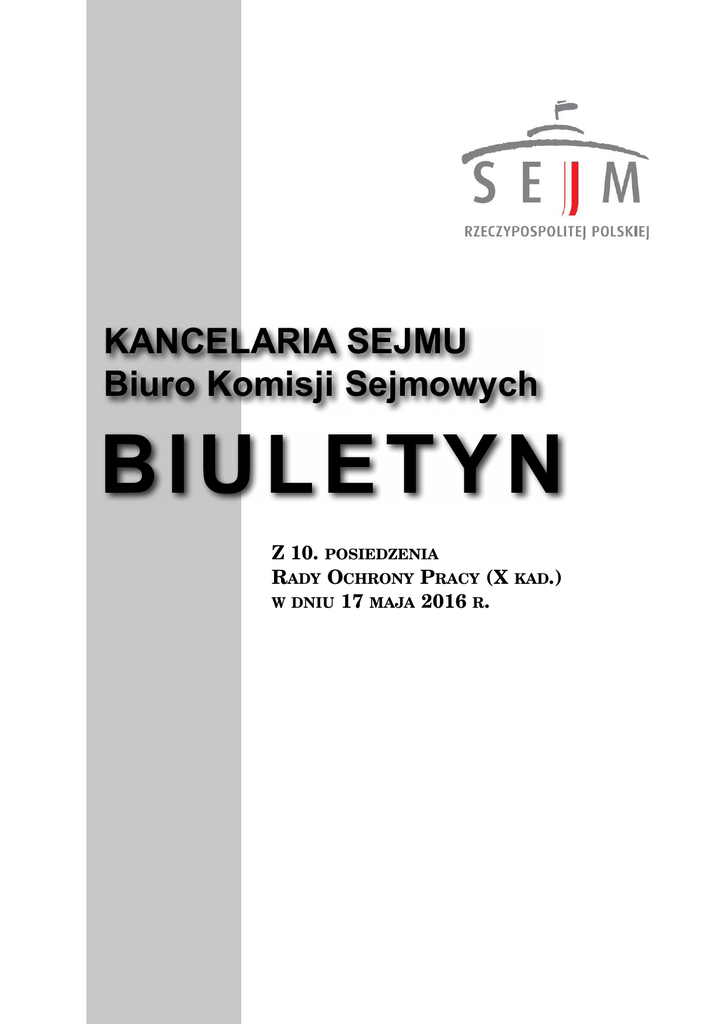 KANCELARIA SEJMU Biuro Komisji Sejmowych B IU LETYN Z 10. posiedzenia Rady Ochrony Pracy (X w dniu 17 maja 2016 r. kad.) Biuletyn z posiedzenia Rady Ochrony Pracy (nr 10/X kad.) 17 maja 2016 r. Rada Ochrony Pracy, obradująca pod przewodnictwem posła Janusza Śniadka (PiS), przewodniczącego Rady, zrealizowała następujący porządek dzienny: – wyrażenie opinii na temat wniosku Marszałka Sejmu dotyczącego wniosku Głównego Inspektora Pracy o powołanie pana Zbigniewa Ryfki na stanowisko zastępcy głównego inspektora pracy, – wyrażenie opinii na temat wniosku Głównego Inspektora Pracy o odwołanie pani Beaty Marynowskiej ze stanowiska okręgowego inspektora pracy w Katowicach w związku ze złożoną rezygnacją, – skutki dla budżetu państwa zastępowania umów o pracę umowami cywilnoprawnymi i zatrudniania w „szarej strefie” – materiał przygotowany przez Zakład Ubezpieczeń Społecznych, Najwyższą Izbę Kontroli, Główny Urząd Statystyczny i Państwową Inspekcję Pracy; – sprawy bieżące. W posiedzeniu udział wzięli: Roman Giedrojć główny inspektor pracy wraz ze współpracownikami, Krzysztof Kwiatkowski prezes Najwyżej Izby Kontroli wraz ze współpracownikiem, Paweł Jaroszek członek zarządu Zakładu Ubezpieczeń Społecznych, Grażyna Marciniak wiceprezes Głównego Urzędu Statystycznego, W posiedzeniu wzięła udział Ewa Mierosławska z sekretariatu Rady w Biurze Prawnym i Spraw Pracowniczych Kancelarii Sejmu. Przewodniczący Rady Ochrony Pracy Janusz Śniadek: Otwieram posiedzenie Rady Ochrony Pracy. Chciałbym je rozpocząć od przekazania państwu pozdrowień od pani prof. Danuty Koradeckiej. Na pewno państwo zwrócili uwagę na nieobecność pani profesor podczas uroczystej sesji Rady Ochrony Pracy. Pani prof. Koradecka miała bardzo przykry wypadek w przededniu uroczystego posiedzenia Rady. Powoli wraca do zdrowia. Dziękuje wszystkim, którzy przekazywali jej życzenia i wyrazy solidarności. Myślę, że szybko do nas dołączy. Wszyscy życzymy pani profesor, aby jak najszybciej wróciła do zdrowia i pełni sił. Witam prezesa Najwyższej Izby Kontroli – pana Krzysztofa Kwiatkowskiego, wiceprezesa Zakładu Ubezpieczeń Społecznych – pana Pawła Jaroszka, wiceprezesa Głównego Urzędu Statystycznego – panią Grażynę Marciniak, głównego inspektora pracy Romana Giedrojcia wraz ze współpracownikami. Witam członków Rady. Informuję państwa, że marszałek Sejmu przesłał do Rady Ochrony Pracy pismo, w którym prosi o przedstawienie przez Radę opinii dotyczącej wniosku Głównego Inspektora Pracy o powołanie pana Zbigniewa Ryfki na stanowisko zastępcy głównego inspektora pracy. Zgodnie z art. 4 ust. 1 ustawy z 13 kwietnia 2007r. o Państwowej Inspekcji Pracy, Rada Ochrony Pracy ma wyrazić opinię dotyczącą kandydatury pana Zbigniewa Ryfki na stanowisko zastępcy głównego inspektora pracy. m.k. 3 Rada Ochrony Pracy (Nr 10) Główny Inspektor Pracy przesłał również do Rady Ochrony Pracy pismo, w którym wnosi o wyrażenie przez Radę opinii o zamiarze odwołania pani Beaty Marynowskiej ze stanowiska okręgowego inspektora pracy w Katowicach. Pani Beata Marynowska złożyła rezygnację z zajmowanego stanowiska. Oto treść pisma pani Beaty Marynowskiej: „Szanowny Panie Ministrze, składam rezygnację z funkcji okręgowego inspektora pracy w Katowicach. Powodem rezygnacji są względy osobiste. Jednocześnie na Pana ręce składam podziękowania dla wszystkich pracowników Głównego Inspektoratu Pracy w Warszawie za lata owocnej i konstruktywnej współpracy.” W związku z powyższym porządek posiedzenia Rady przedstawia się następująco: – wyrażenie opinii na temat wniosku Marszałka Sejmu dotyczącego wniosku Głównego Inspektora Pracy o powołanie pana Zbigniewa Ryfki na stanowisko zastępcy głównego inspektora pracy, – wyrażenie opinii na temat wniosku Głównego Inspektora Pracy o odwołanie pani Beaty Marynowskiej ze stanowiska okręgowego inspektora pracy w Katowicach, w związku ze złożoną rezygnacją; – skutki dla budżetu państwa zastępowania umów o pracę umowami cywilnoprawnymi i zatrudnienia w „szarej strefie” – materiał przygotowany przez Zakład Ubezpieczeń Społecznych, Najwyższą Izbę Kontroli, Główny Urząd Statystyczny i Państwową Inspekcję Pracy, – sprawy bieżące. Czy jest sprzeciw wobec przyjęcia proponowanego porządku dziennego? Nie widzę zgłoszeń. Stwierdzam, że Rada przyjęła porządek dzienny posiedzenia. Przechodzimy do rozpatrzenia punktu pierwszego porządku dziennego. Przypominam, że charakterystyka zawodowa pana Zbigniewa Ryfki została przesłana mailem oraz rozdana członkom Rady przed posiedzeniem. Proszę Głównego Inspektora Pracy o przedstawienie kandydatury na stanowisko zastępcy głównego inspektora pracy. Główny inspektor pracy Roman Giedrojć: Pan Zbigniew Ryfka w trakcie prawie 25-letniego zatrudnienia w Państwowej Inspekcji Pracy wykazał się dużą wiedzą specjalistyczną oraz bogatym doświadczeniem w zakresie wykonywania zadań nałożonych na PIP. Wykonywał wiele kontroli specjalistycznych dotyczących czasu pracy oraz wynagrodzeń w sektorze górniczym i okołogórniczym. W latach 2006-2010 był zastępcą okręgowego inspektora pracy w Katowicach. Współpracowałem z panem Ryfką jako zastępca głównego inspektora pracy w latach 2006-2008. Wiem, że posiada on bogatą wiedzę w zakresie uwarunkowań formalno-prawnych, szczególnie technicznych nie tylko w sektorze górnictwa, ale w każdym, którym zajmuje się Państwowa Inspekcja Pracy. Konsekwencja w działaniu, zaangażowanie w realizację misji i celów Państwowej Inspekcji Pracy, doświadczenie zawodowe oraz umiejętności interpersonalne dają pewność właściwego wykonywania przez pana Zbigniewa Ryfkę funkcji zastępcy głównego inspektora pracy. Proszę Radę o poparcie tej kandydatury. Przewodniczący Rady Ochrony Pracy Janusz Śn