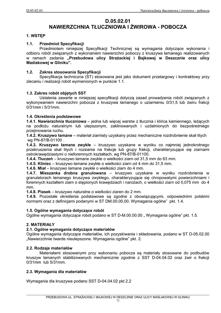D.05.02.01 NAWIERZCHNIA TŁUCZNIOWA I ŻWIROWA
