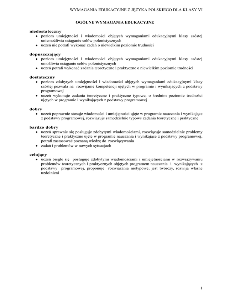 WYMAGANIA EDUKACYJNE Z JĘZYKA POLSKIEGO
