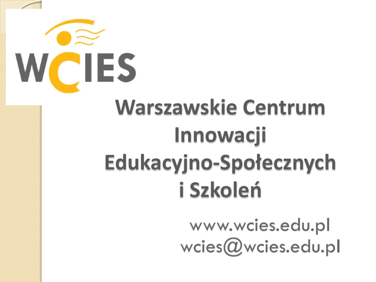 Warszawskie Centrum Innowacji Edukacyjno-Społecznych i Szkoleń Działania Warszawskie go Centrum Innowacji Edukacyjno-Społecznych i Szkoleń na rzecz warszawskiego środowiska rodzicielskiego w odpowiedzi na wyniki badania „Samorządność rodzicielska w warszawskich szkołach”. O projekcie Projekt badawczy dotyczący samorządności rodzicielskiej został zrealizowany przez Centrum Komunikacji Społecznej Urzędu m.st. Warszawy z inicjatywy stołecznego Biura Edukacji, przy współpracy Warszawskiego Centrum Innowacji Edukacyjno-Społecznych i Szkoleń oraz Stowarzyszenia TRIO, w okresie grudzień 2008 r. – maj 2009 r. Jego wyniki zostaną wykorzystane przy realizacji programu operacyjnego polityki edukacyjnej m.st. Warszawy "Rodzice we wspólnocie szkolnej - Warszawskie Forum Rodziców i Rad Rodziców" w ramach programu strategicznego „Społeczeństwo obywatelskie i samorządne”. Najważniejsze ustalenia badawcze:  Niska znajomość praw rodziców Znajomość praw rodziców przysługujących im w placówce oświatowej jest raczej niska wśród rodziców niezaangażowanych w samorządność rodzicielską, zaś wśród członków Rad Rodziców jest bardzo ogólna i nie obejmuje wszystkich obszarów.  Poczucie ograniczonego wpływu na decyzje zapadające w szkole Rodzice uważają, że mają największy wpływ na różnego rodzaju drobne przedsięwzięcia organizacyjne dotyczące bieżących spraw szkolnych (np. organizację imprez szkolnych), zaś najmniejszy na możliwości finansowe placówki i kwestie dydaktyczne (np. program nauczania). Członkowie Rad Rodziców podkreślają, że swymi działaniami raczej wspierają dyrekcję niż samodzielnie formułują postulaty. Najważniejsze ustalenia badawcze:  Brak wykorzystania potencjału Rad Rodziców Zarówno rodzice niezaangażowani w samorządność rodzicielską jak i członkowie Rad Rodziców uważają ją za reprezentację ogółu rodziców. Mimo to zainteresowanie działaniami Rad Rodziców jest znikome, a sami ich członkowie podkreślają, iż brak zaangażowania ogółu rodziców stanowi ważny czynnik ograniczający działania Najważniejsze ustalenia badawcze: Co w największym stopniu ogranicza działania Rady Rodziców w placówce? Brak zaangażowania ogółu rodziców 66% Brak czasu członków Rady 46% Niedobór środków finansowych 41% Niewystarczająca wiedza o możliwościach działania Rady 27% Brak poczucia wpływu Rady na sprawy szkolne 19% Opór dyrekcji placówki 13% Brak jasno określonych zasad działania Rady 10% Brak umiejętności pracy w Radzie jako w zespole 8% Obawa przed podjęciem działań Opór nauczycieli/wychowawców klas Inne Nie wiem/trudno powiedzieć 7% 6% 3% 4% Najważniejsze ustalenia badawcze:  Niepełne wykorzystanie prawa do wpływania na politykę placówki Około połowa respondentów przyznała, że ich Rada Rodziców stosuje w praktyce swoje prawo stanowiące jakim jest uchwalanie programów: wychowawczego (50%) i profilaktyki (43%). Czasem członkowie Rad biorą także udział w konsultacjach dokumentów prawnych placówki zgodnie z Ustawą o Systemie Oświaty (najczęściej jest to projekt planu finansowego – 66%).  Potrzeba zewnętrznego wsparcia Rad Rodziców Aby polepszyć swą skuteczność, członkowie Rad najchętniej chcieliby skorzystać z możliwości wymiany doświadczeń z innymi Radami, ze szkoleń informacyjnych, tzw. „twardych” (głównie z zakresu pozyskiwania środków finansowych), konsultacji ze specjalistami oraz niektórzy ze szkoleń doskonalących umiejętności, tzw. „miękkich” (np. ze sposobów rozwiązywania konfliktów). Najważniejsze ustalenia badawcze: Jakiego typu wsparcie byłoby dla Pana(i) jako członka Rady Rodziców najbardziej użyteczne? Wymiana doświadczeń z innymi Radami Rodziców 62% Szkolenie - pozyskiwanie środków finansowych 59% Szkolenie - prawo oświatowe 51% Konsultacja ze specjalistami 37% Szkolenie - rozwiązywanie konfliktów 17% Szkolenie - komunikacja 15% Szkolenie - praca w zespole Szkolenie - radzenie sobie ze stresem Inna forma wsparcia Nie wiem/trudno powiedzieć 12% 5% 4% 8% Co już zostało zrobione?:       Organizacja I i II Warszawskiego Forum Rodziców i Rad Rodziców: 2 spotkania plenarne, 8 spotkań warsztatowych w okresie jesień 2007 – jesień 2008; Organizacja III Warszawskiego Forum Rodziców i Rad Rodziców (25 marca 2009) i towarzyszących czterech spotkań warsztatowych; Organizacja IV Warszawskiego Forum Rodziców i Rad Rodziców (14 maja 2009) i towarzyszących trzech spotkań warsztatowych; Organizacja seminarium dla dyrektorów warszawskich Szkół „Efektywna współpraca Dyrektora szkoły z Radą Rodziców”. To seminarium zapoczątkowało cykl spotkań z dyrektorami o tematyce „rodzicielskiej”; Opracowanie koncepcji utworzenia grupy liderów środowisk rodzicielskich (20 osób w skali całego miasta); rekrutacja grupy; Zaplanowanie i przeprowadzenie badania samorządności rodzicielskiej w Warszawie. Opracowanie raportu. (marzec – czerwiec 2009); Rok szkolny 2009/2010:        V Forum Rodziców i Rad Rodziców (14 września), 4 spotkania warsztatowe (21, 28 września, 1, 5 października); Konferencja prasowa – zaprezentowanie wyników badania samorządności rodzicielskiej w Warszawie (21 września); Szkolenie dla liderów środowisk rodzicielskich (październik-grudzień) – 60 godzin; Konferencja „Partnerska Szkoła” we współpracy ze Stowarzyszeniem TRIO (12, 13 listopada); Kontynuacja seminarium „Efektywna współpraca dyrektora szkoły z radą rodziców” (9 grudnia); Vi i VII Warszawskie Forum Rodziców i Rad Rodziców (luty – maj 2010); Uruchomienie grupy liderów rodzicielskich (luty – maj 2010); Najważniejsze osiągnięcia: Współpraca Miasta z organizacjami pozarządowymi (TRIO, STO);  Mobilizacja warszawskiego środowiska rodziców;  Diagnoza warszawskiego środowiska rodziców;  Najważniejsze cele na przyszłość: Doprowadzenie do zrzeszania si