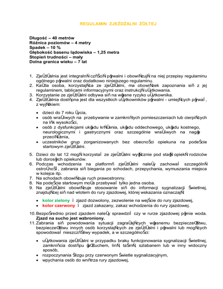 Regulamin zjeżdżalni żółtej 40m