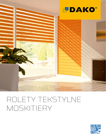 ROLETY TEKSTYLNE MOSKITIERY Ciągłe innowacje od 1994 roku Jakość Innowacje Zaawansowana technologia Profesjonalna sieć Partnerów Handlowych DAKO to długa historia innowacji, których celem jest zrozumienie potrzeb klienta i dostosowanie się do jego oczekiwań. Od 1994 roku DAKO produkuje wysokiej klasy stolarkę z PVC, drewna, aluminium i stali, nieustannie poszerzając ofertę i dostosowując ją do zmieniających się wymagań klientów. Firma dba o jakość i precyzję wykonania produktów, modernizując proces produkcji wraz z rozwojem nowoczesnych technologii. Systematycznie podnosi kwalifikacje kadry, inwestuje w rozwój przedsiębiorstwa i poszerza działalność o kolejne rynki zagraniczne. Miarą sukcesu DAKO są miliony sprzedanych okien, drzwi, bram i rolet oraz szerokie grono zadowolonych klientów z całego świata. Gdzie jesteśmy? Polska, Niemcy, Włochy, Norwegia, Szwecja, Francja, Belgia, Czechy, Słowacja, Szwajcaria, Luksemburg, Hiszpania, Izrael, Tunezja, Meksyk, Japonia i wiele innych krajów całego globu! Doświadczenie Międzynarodowy zasięg Zobacz film o Fabryce Okien DAKO na www.dako.eu Nagrody i wyróżnienia 2 3 KOMPLEKSOWA OFERTA ZOBACZ RÓWNIEŻ: Harmonia | wygoda | oszczędności Skorzystanie z pełnego zakresu oferty DAKO umożliwia klientom kompleksowe wyposażenie domu w stolarkę otworową. Ścisła kooperacja technologów i projektantów odpowiedzialnych za poszczególne grupy wyrobów gwarantuje estetyczną harmonię stolarki całego domu. Zapewnia również technologiczną zgodność wszystkich produktów, która jest szczególnie ważna w systemach Inteligentnego Zarządzania Domem. Możliwość wyceny i zakupu wszystkich produktów w jednym punkcie sprzedaży pozwala z kolei na komfortowe i sprawne podejmowanie decyzji, dodatkowo oszczędzając czas i pieniądze. STOLARKA PVC Okna | Drzwi przesuwne | Drzwi zewnętrzne STOLARKA DREWNIANA Okna | Drzwi przesuwne | Drzwi zewnętrzne STOLARKA ALUMINIOWA Okna | Drzwi przesuwne Drzwi zewnętrzne | Konstrukcje | Fasady DRZWI PRZECIWPOŻAROWE I STALOWE SPIS TREŚCI ROLETY TEKSTYLNE 6 Rolety wolnowiszące7 Rolety w kasecie aluminiowej8 Rolety w kasecie PVC9 Kolorystyka10 MOSKITIERY12 ŚWIATOWY ZASIĘG14 BRAMY GARAŻOWE ROLETY ZEWNĘTRZNE TEN FOLDER DOTYCZY ROLET TEKSTYLNYCH | MOSKITIER Jeśli jesteś zainteresowany innymi produktami DAKO wejdź na www. dako.eu lub poproś Partnera Handlowego DAKO o odpowiednie materiały. Masz pytania? Doradcy w salonach sprzedaży Partnerów Handlowych DAKO chętnie na nie odpowiedzą. Listę Partnerów Handlowych znajdziesz na www.dako.eu. 4 5 Rolety tekstylne ROLETY TEKSTYLNE Rolety tekstylne to praktyczne i estetyczne osłony okien, montowane wewnątrz pomieszczeń, zapewniające prywatność oraz podnoszące estetykę każdego wnętrza. Niezwykle szeroka oferta tkanin do rolet tekstylnych, różne możliwości konstrukcyjne, a także kilka wariantów montażu pozwalają na idealne dopasowanie kolorów i wzorów rolet do indywidualnych preferencji użytkowników. ROLETY WOLNOWISZĄCE W systemie rolet wolnowiszących tkanina rolety jest podnoszona i opuszczana poprzez nawijanie na wałek przy pomocy łańcuszka koralikowego. Rolety wolnowiszące nie dają całkowitego zaciemnienia pomieszczenia, ponieważ nie przylegają bezpośrednio do ściany, ani do okna. Poprzez boczne szczeliny część światła przedostaje się do pomieszczenia. DOSTĘPNE SYSTEMY ROLET WOLNOWISZĄCYCH SYSTEM DK-MAJA System DK-MAJA przeznaczony jest do montażu na skrzydłach okiennych o niewielkiej powierzchni, gdy szerokość rolety nie przekracza 170 cm. SYSTEM DK-BLANKA System DK-BLANKA stosowany jest do okien o większych rozmiarach – nawet do 4 m wysokości i 3,2 m szerokości. SYSTEM DK-STELLA System DK-STELLA stosowany jest, gdy szerokość rolety nie przekracza 120 cm. W rolecie DK-STELLA stosowana jest tkanina typu Dzień / Noc. 6 7 Rolety tekstylne ROLETY W KASECIE ALUMINIOWEJ W systemie rolet w kasecie aluminiowej tkanina rolety jest podnoszona i opuszczana poprzez nawijanie na wałek ukryty w estetycznej kasecie wykonanej z aluminium. Tkanina rolety prowadzona w aluminiowych prowawdnicach przylega szczelnie do ramy okiennej dając całkowite zaciemnienie pomieszczenia. DOSTĘPNE SYSTEMY W KASECIE ALUMINIOWEJ SYSTEM DK-VERA Roleta tekstylna posiadająca kasetę i prowadnice aluminiowe, przeznaczona do okien rozwiernych i uchylnych. Maksymalne rozmiary rolety wynoszą 1700 mm x 2200 mm. SYSTEM DK-LUISA System stosowany jest w oknach o dużych powierzchniach, znajduje zastosowanie w pomieszczeniach biurowych, hotelach oraz salach konferencyjnych. W systemie rolet DK-LUISA istnieje możliwość zamontowania silnika. ROLETY W KASECIE PVC W systemie rolet w kasecie PVC tkanina rolety jest podnoszona i opuszczana poprzez nawijanie na wałek ukryty w estetycznej kasecie PVC. Tkanina rolety prowadzona w prowadnicach z PVC przylega szczelnie do ramy okiennej dając całkowite zaciemnienie pomieszczenia. DOSTĘPNE SYSTEMY ROLET W KASECIE PVC SYSTEM DK-NINA Roleta tekstylna, wyposażona w kasetę i prowadnice PVC. Kasety i prowadnice dostępne wyłącznie w kolorze białym. Maksymalne wymiary rolety to 1700 mm x 1500 mm. SYSTEM DK-IGA Roleta tekstylna, wyposażona w kasetę PVC i prowadnice PVC. Kaseta i prowadnice dostępne również w kolorach drewnopodobnych. Maksymalne wymiary rolety to 1700 mm x2200 mm. SYSTEMY DK-KLARA I DK-ROMA Roleta tekstylna wyposażona w kasetę i prowadnice PVC. W roletach DK-KLARA i DK-ROMA stosowana jest tkanina typu Dzień / Noc. Maksymalne wymiary rolety DK-KLARA to 1500 mm x 2200 mm, a rolety DK-ROMA 1500 mm x 1500 mm. 8 9 Rolety tekstylne KOLORYSTYKA ROLET TEKSTYLNYCH - (WYBÓR) Tkaniny gładkie – poliester 100% – grupa cenowa I A1 A2 A3 A4 A5 A6 A7 B11 B12 B21 A51 Tkaniny podgumowane – poliester 100% - grupa cenowa II B5 B6 B9 B10 Tkaniny żakardowe – poliester 100% - grupa cenowa II C10 C11 C12 C13 C14 Tkaniny żakardowe – polyester 100%–