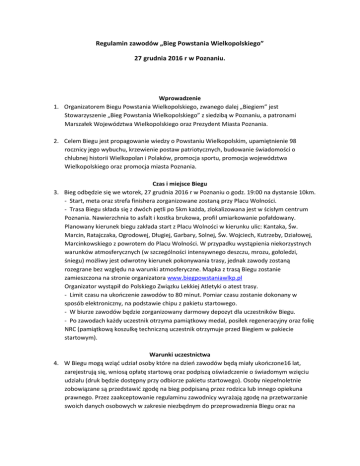 Regulamin Biegu Powstania Wielkopolskiego 2016