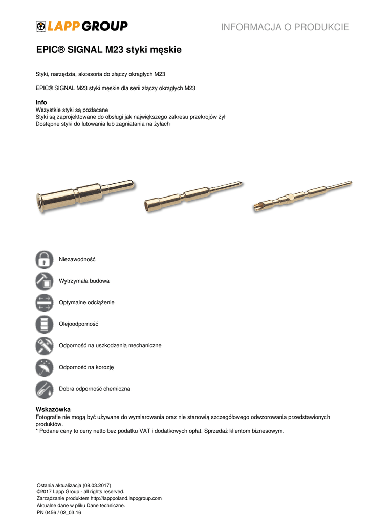 INFORMACJA O PRODUKCIE EPIC® SIGNAL M23 styki męskie