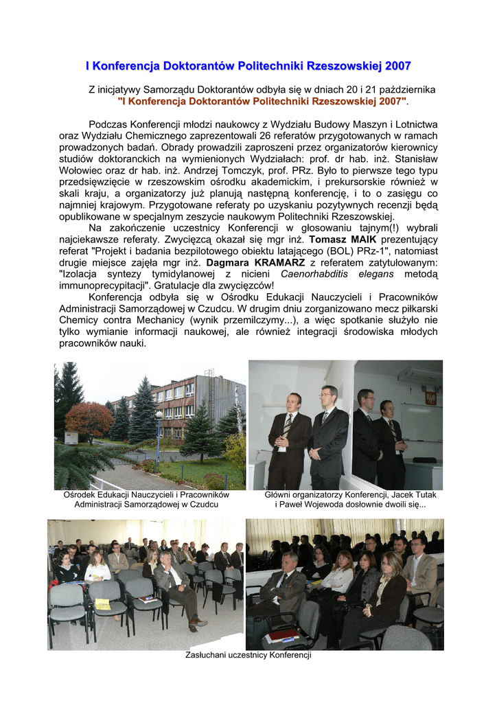I Konferencja Doktorantw Politechniki Rzeszowskiej 2007