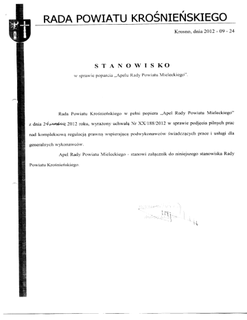 Stanowisko Rady Powiatu Krośnieńskiego z dnia 29