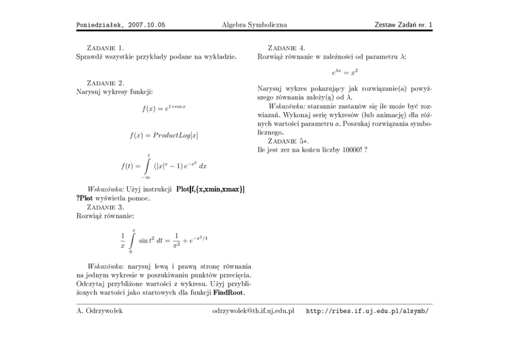 Poniedziaªek, 2007.10.05 http://ribes.if.uj.edu.pl/alsymb/