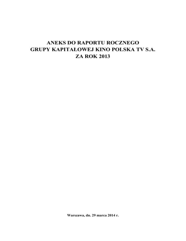 aneks do raportu rocznego grupy kapitałowej kino polska tv sa za
