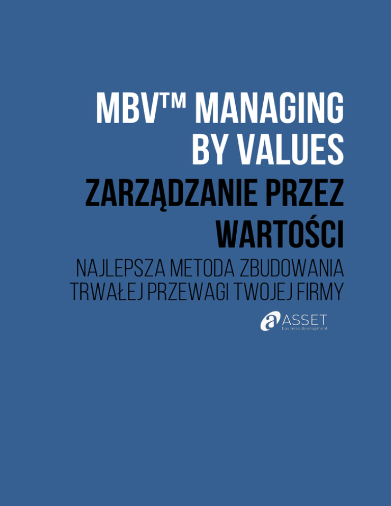 ----------------------------------------------------------------------------------------------------------------------------------------Specjalistyczne szkolenia i konsultacje biznesowe ASSET Business Development Sp. z o.o. Warsaw Financial Center, ul. Emilii Plater 53, 00-113 Warszawa tel: (+48 22) 101 39 74 , [email protected], www.asset.pl Co wyróżnia takie korporacje jak Microsoft, Hewlett-Packard czy American Express? W czym tkwi ich klucz do sukcesu? Bez wątpienia łączy je jedno: wysoko rozwinięte poczucie wartości organizacyjnych. W wielu przypadkach wartości te zostały sformułowane przez założycieli firmy lub osoby, które nią zarządzały. Nie są one wytworem chwili, lecz wielu lat pracy wszystkich ludzi zatrudnionych w danej organizacji. Mówią o tym, co jest dla firmy najważniejsze, a identyfikują się z nimi wszyscy pracownicy, zarówno ci szeregowi, jak i dyrektorzy najwyższych szczebli. Każda firma ma taki zbiór wartości. To one decydują o jej misji, o strategii, którą realizuje, a także o tym, w jaki sposób jej pracownicy komunikują się z klientami i kontrahentami. Bardzo ważne jest, żeby wszystkie osoby zatrudnione w firmie były ich świadome. Nie mogą to być wartości sztucznie narzucane, będące efektem aktualnego trendu w zarządzaniu. Muszą one stanowić integralną część firmy i leżeć u podstaw każdej podejmowanej decyzji. To właśnie te wartości - praktykowane, a nie deklarowane - decydują o sukcesie firmy. Zarządzanie poprzez wartości skupia swoją uwagę przede wszystkim na potencjale ludzkim. Zakłada, że najważniejszą rzeczą jest zdefiniowanie swoich zasad i wartości, a następnie wdrożenie ich w codzienne życie tak, aby naprawdę znaczyły coś dla nas, dla ludzi, dla zasad i postanowień, które są dla nas najdroższe. Materiały dydaktyczne/podręcznik dokumentujące przekazaną wiedzę Testy i analizy własnych możliwości Imienny certyfikat ukończenia szkolenia Ćwiczenia indywidualne i zespołowe Elementy coachingu, Mindmappingu Dyskusje i burze mózgów, studia przypadków Kwestionariusze i testy zachowań Czas trwania: 1 dzień Godzina: 09.30-16.00 Inwestycja zawiera: materiały szkoleniowe, przerwy kawowe, certyfikat Menadżer projektu: Anna Andruczyk, [email protected] ----------------------------------------------------------------------------------------------------------------------------------------Specjalistyczne szkolenia i konsultacje biznesowe ASSET Business Development Sp. z o.o. Warsaw Financial Center, ul. Emilii Plater 53, 00-113 Warszawa tel: (+48 22) 101 39 74 , [email protected], www.asset.pl WPROWADZENIE Co to są wartości i dlaczego to jest ważne? Wartości zwykłych ludzi Wartości w życiu człowieka a wartości w życiu przedsiębiorstw WARTOŚCI W BIZNESIE Różne typy organizacji i różne strategie zarządzania Zwykli ludzie i wspaniałe przedsiębiorstwa Przełomowe idee i wielcy guru zarządzania Wyzwania w zarządzaniu biznesem ZARZĄDZANIE PRZEZ WARTOŚCI Zarządzanie poprzez wartości - cóż to takiego? Definicja głównych wartości przedsiębiorstwa, czyli o czym tak naprawdę mówimy Odkrywanie głównych wartości, czyli w co tak naprawdę wierzymy Fundamenty zarządzania przez wartości Kultura organizacyjna — niewidzialna siła, prawdziwa moc wartości WDRAŻANIE MBV Wartości jako dziedzictwo kulturowe przedsiębiorstwa Wartości jako element integrujący pracownika z przedsiębiorstwem Wartości jako katalizator atmosfery pobudzenia organizacyjnego Wartości jako element motywujący jednostkę do działania Wartości jako generatory zyskowności Wartości jako czynnik wspomagający zarządzanie zmianą Wartości jako drogowskaz w czasie kryzysu Komunikowanie głównych wartości, czyli jak powiedzieć o nich innym MBV W PRAKTYCE. WARSZTAT Mapa zarządzania przez wartości Identyfikacja wartości - opis procesu Przekładanie wartości na działania we wszystkich płaszczyznach Szukamy właściwych, a nie najlepszych pracowników Rozwój kompetencji opartych na wartościach Rola wartości w zapewnianiu realizacji wysokich wyników Rola wartości w budowaniu zaangażowania pracowników i kultury organizacyjnej Wartości w zarządzaniu produktami, sprzedażą i wynikiem finansowym Przywództwo przez wartości CASE STUDY Jak to robią najlepsi? Microsoft, American Express, Compaq, Hewlett-Packard Sony, HBO, Coca-Cola, Nokia i inne... Antyprzykłady PODSUMOWANIE / ZAKOŃCZENIE ----------------------------------------------------------------------------------------------------------------------------------------Specjalistyczne szkolenia i konsultacje biznesowe ASSET Business Development Sp. z o.o. Warsaw Financial Center, ul. Emilii Plater 53, 00-113 Warszawa tel: (+48 22) 101 39 74 , [email protected], www.asset.pl Dominik Frajberg. Charyzmatyczny trener, niezwykle skuteczny menadżer, inspirujący coach biznesowy. Uczestnicy szkoleń i spotkań opisują go jako: "...wyjątkowo kontaktowy, z ogromną wiedzą i doświadczeniem, ale też pełen humoru i dystansu do samego siebie...". Absolwent psychologii Uniwersytetu Jagiellońskiego. Psycholog biznesu, specjalista w dziedzinie motywacji, sprzedaży i marketingu. Od 10 lat zajmuje stanowiska kierownicze w zagranicznych i polskich firmach doradczych. Posiada ponad dziesięcioletnie doświadczenie w dziedzinie zarządzania personelem oraz zarządzania organizacją. Obecnie przygotowuje i realizuje międzynarodowe projekty z zakresu rozwoju zasobów ludzkich, organizacji i zarządzania. Jest członkiem rady programowej Europejskiego Stowarzyszenia Rozwoju Biznesu EBDA (European Business Development Association) oraz Instytutu Partnerstwa Publiczno Prywatnego IPPP. Autor ponad 200 programów szkoleń i publikacji, konsultant i Coach biznesowy. Obecnie zajmuje stanowisko: Prezes Zarządu Asset Business Development Sp. z o.o. (od 11 lat) Prezes Zarządu Instytutu Badań i Analiz Menadżerskich IBAM. (od 10 lat) Prezes Z