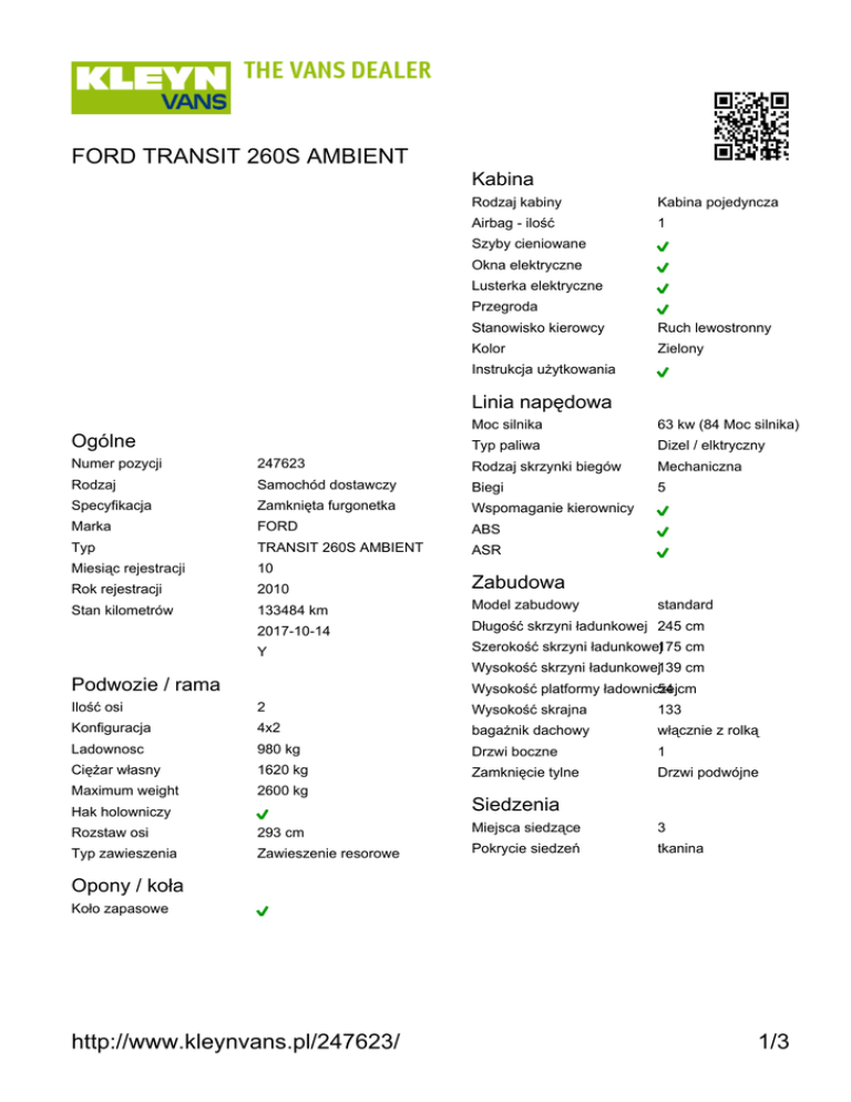 http://www.kleynvans.pl/247623/ 1/3 FORD TRANSIT 260S AMBIENT