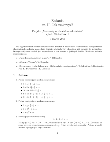 1. Oblicz miarę zbioru [2, 2 21 ] ∪ [3, 3 13 ] ∪ [4, 4 14 ] ∪ [5, 5 51 ] . . ..