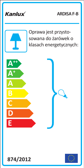 ARDISA F-B Oprawa jest przystosowana do żarówek o klasach energetycznych: A++ A+ A B C D E 874/2012