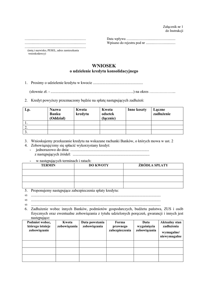 Wniosek o kredyt konsolidacyjny