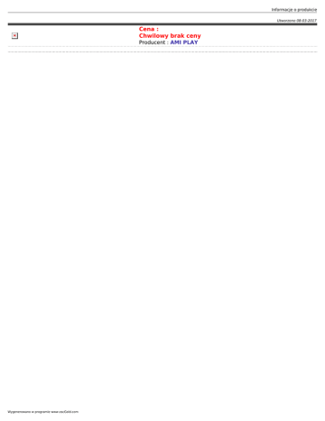 Informacje o produkcie Utworzono 08-03-2017 Cena : Chwilowy brak ceny Producent : AMI PLAY Wygenerowano w programie www.oscGold.com