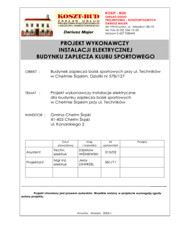 projekt wykonawczy instalacji elektrycznej budynku zaplecza klubu