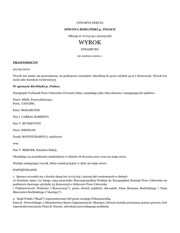 CZWARTA SEKCJA SPRAWA BERLIŃSKI p. POLSCE (Skargi nr