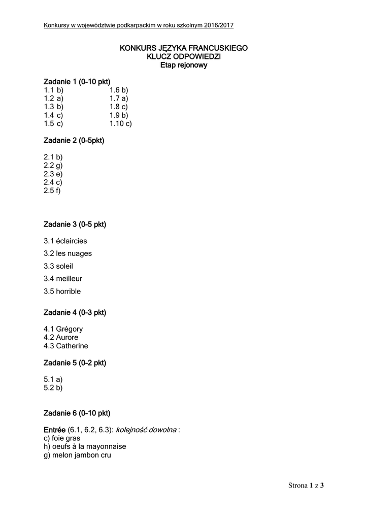 Strona 1 z 3 KONKURS JĘZYKA FRANCUSKIEGO KLUCZ