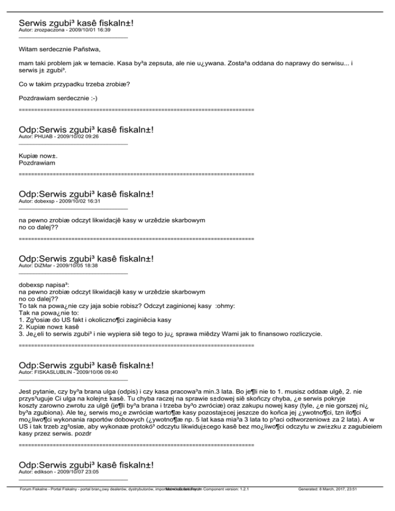 Odp:Serwis zgubi³ kasę fiskaln±! Odp:Serwis zgubi³