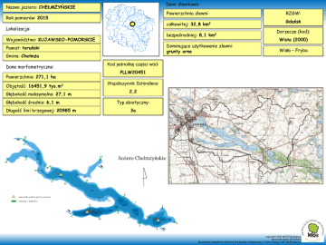 Dane zlewniowe: Nazwa jeziora: CHEŁMŻYŃSKIE Powierzchnia zlewni: Rok pomiarów: 2015 całkowitej: 32,8 km2 Lokalizacja: bezpośredniej: 8,1 km2 Województwo: KUJAWSKO-POMORSKIE Dominujące użytkowanie zlewni: grunty orne Powiat: toruński Gmina: Chełmża Dane morfometryczne: Powierzchnia: 271,1 ha Objętość: 16451,9 tys.m3 Głębokość maksymalna: 27,1 m Głębokość średnia: 6,1 m Długość linii brzegowej: 20985 m RZGW: Gdańsk Dorzecze (kod): Wisła (2000) Wisła – Fryba Kod jednolitej części wód: PLLW20451 Współczynnik Schindlera: 2,2 Typ abiotyczny: 3a copyright 2016 WIOŚ Bydgoszcz opracował: Dawid Strzelecki Wojewódzki Inspektorat Ochrony Środowiska w Bydgoszczy ul. Piotra Skargi 2 85-018 Bydgoszcz Wartości wskaźników uwzględnianych przy klasyfikacji stanu jednolitych części wód powierzchniowych: ELEMENTY BIOLOGICZNE (podstawowe) METRIKS/INDEKS klasa wartość Multimetriks Fitoplanktonowy (PMPL) Multimetryczny Indeks Okrzemkowy (IOJ) Makrofitowy Indeks Stanu Ekologicznego (ESMI) Jeziorowy Indeks Rybny (LFI ) Indeks Makrobezkręgowców Bentosowych (LMI)* 1,57 0,493(2012 r.) II III 0,419 (2014 r.) nie badano 0,645 II - ELEMENTY FIZYKOCHEMICZNE (wspierające) jednostka wskaźnik wart. min. (data) wart. maks. (data) Przezroczystość (krążek Secchiego) m Średnie nasycenie tlenem hypolimnionu (lato) % Przewodność w 20°C µS/cm 438 (05.08.2015) 467 (02.06.2015) Azot ogólny mgN/l 0,93 (06.05.2015) Fosfor ogólny mgP/l Specyficzne zanieczyszczenia syntetyczne i niesyntetyczne z grupy 3.6. - wart. średnia klasa 2,9 > II 4,5 (02.06.2015) 1,3 (05.08.2015) < II 0 0,040 (06.05.2015) 453 > II 1,67 (07.07.2015) 1,22 > II 0,170 (20.10.2015) 0,103 (w granicach błędu pomiaru) > II brak przekroczeń > II skala ocen stanu wód Klasyfikacja stanu jednolitych części wód powierzchniowych elementy biologiczne na podstawie rozporządzenia Ministra Środowiska z dnia 22 października 2014 roku (Dz.U.2014.1482) PMPL ELEMENTY BIOLOGICZNE ELEMENTY FIZYKO-CHEMICZNE (podstawowe) (wspierające) IOJ ESMI LFI krążek Secchiego warunki tlenowe przewodność azot ogólny fosfor ogólny pierwiastki z grupy 3.6., klasa I klasa II klasa III klasa IV klasa V elementy fizyko-chemiczne powyżej stanu dobrego poniżej stanu dobrego stan ekologiczny Ocena elementów biologicznych Ocena fizykochemiczna stan chemiczny stan ekologiczny Dobry stan wód bardzo dobry dobry umiarkowany słaby zły stan chemiczny dobry zły Ocena stanu ekologicznego Jeziora Chełmżyńskiego w latach 2010 – 2015 Wskaźnik Rok badań 2010 2011 2012 2013 2014 2015 PMPL 2,05 1,9 2,6 2,2 1,86 1,57 ESMI 0,421 0,406 0,409 0,409 0,419 0,419 OIJ 0,400 0,604 0,493 0,493 0,493 0,493 2,5 2,1 2,7 2,8 3,1 2,9 0,104 0,092 0,083 0,070 0,071 0,103 Azot całkowity (mgN·dm-3) 1,60 1,75 1,47 1,29 1,17 1,22 Przewodność (20 °C)(µS·cm-1) 445 448 445 433 442 453 słaby dobry umiarkowany umiarkowany dobry dobry Widzialność krążka Secchi’ego (m) Fosfor całkowity (mgP·dm-3) Stan ekologiczny PMPL – wskaźnik fitoplanktonowy (obliczany corocznie na podstawie 6 oznaczeń biomasy i chlorofilu „a”) ESMI – wskaźnik makrofitowy (obliczany raz na 3 lata) OIJ – indeks okrzemkowy (obliczany raz na 3 lata)