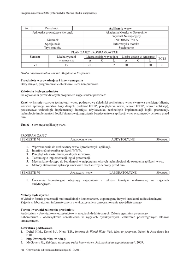 Aplikacje www - Akademia Morska w Szczecinie
