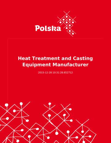 Heat Treatment and Casting Equipment Manufacturer 2015-12-28 10:31:28.652712 2 Это предложение не является торговой информации Adres instytucji/firmy ogłaszającej ofertę REMIX S.A. 66-200 Świebodzin (miasto) . ul. Poznańska 36 . Poland Контактное лицо Patrycja Dzierżanowska [email protected] Тел: www.remixsa.pl Описание порядка REMIX SA is a company which has existed on the market since 1990. Our product portfolio covers: Atmosphere Heat Treatment Equipment; Vacuum Furnaces; Casting and Non-ferrous Metals Heat Treatment Equipment; Spare Parts, Crucibles and After Sales Services and Hot Dip Galvanizing Lines. Since 2012, the Company has been the exclusive commercial partner of AFC-HOLCROFT, the American giant in the production of heat treatment equipment. Nabywcy z zagranicy ● ● ● ● ● ● Belgia Białoruś Bułgaria Czechy Francja Niemcy 3 ● ● ● Rosja USA Wielka Brytania код CPV ● Commercial ovens Тип предложения продажа Срок для получения тендеров 25.06.2016 Действительно с 28.12.2015 Отрасли Produkcja pozostałych maszyn Maszyny dla metalurgii Maszyny i urządzenia Покупатель за рубежом ДА 4