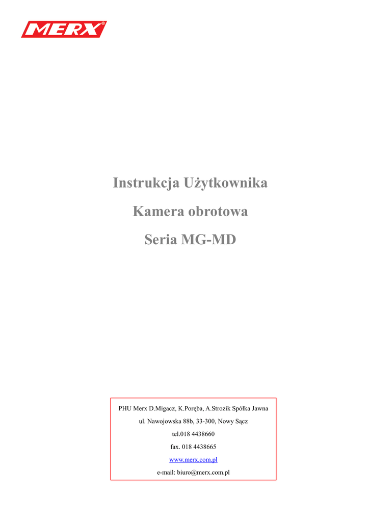 Instrukcja Użytkownika Kamera obrotowa Seria MG-MD