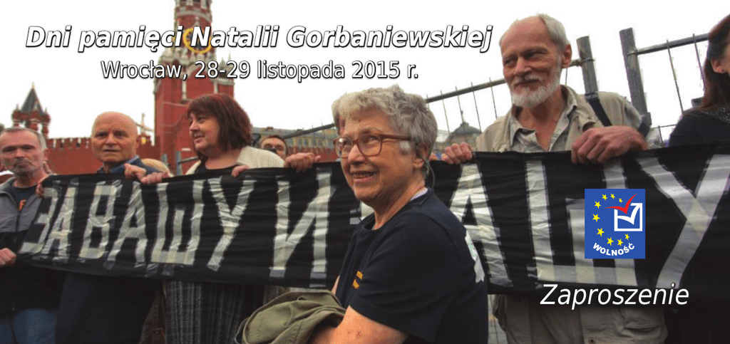 Dni pamięci Natalii Gorbaniewskiej Wrocław, 28-29 listopada 2015 r. Zaproszenie Patronat: PROGRAM DNI PAMIĘCI NATALII GORBANIEWSKIEJ 28 listopada (sobota) 15:00-18:30 otwarcie Dni pamięci Natalii Gorbaniewskiej z udziałem Prezydenta Wrocławia, Wojewody Dolnego Śląska, dyrektora Instytutu Książki oraz konferencja pt. „Przeciw wojnie i nienawiści”, Sala Wielka, Stary Ratusz, Rynek Miasto Wrocław Ministerstwo Kultury Instytut Książki i Dziedzictwa Narodowego RP Organizator: 29 listopada (niedziela) 9:00-11:00 msza święta w intencji ś. p. Natalii Gorbaniewskiej, Cerkiew prawosławna p. w. św. Cyryla i Metodego na Piasku, ul. św. Jadwigi 14 12:00-12:30 pokaz filmu Natelly Boltyanskiej pt. „Paralele, wydarzenia, ludzie”, Kino „Nowe Horyzonty”, ul. Kazimierza Wielkiego 19a-21, sala nr 4 12:30-14:00 panel dyskusyjny „Opozycja rosyjska i wojna na Ukrainie” 15:00-16:00 pokaz filmu Natalii Beshenkovskiej o Natalii Gorbaniewskiej 16:00-17:00 wieczór wspomnień o Natalii Gorbaniewskiej 17:30-18:30 wieczór poetycki poświęcony Natalii Gorbaniewskiej z udziałem Andreja Khadanovicha, Igora Belova, Lva Oborina, Anastasii Vekshinej 18:30-19:30 pokaz filmu Petruški Šustrovej pt. "Wielki wóz. Wygnanie i powrót Tatarów krymskich". Dyskusja 20:00 zamknięcie Dni pamięci Natalii Gorbaniewskiej. Spotkanie przy tablicy pamiątkowej poświęconej Natalii Gorbaniewskiej, Rynek-Ratusz 7/9 Więcej informacji na: www.zawolnosc.eu, facebook.com/zawolnosc Uprzejmie prosimy o potwierdzenie przybycia na e-mail: [email protected] Fundacja „Za Wolność Waszą i Naszą” Współorganizator: Fundacja My razem Patronat medialny: TVP Wrocław Gazeta Wyborcza Polskie Radio dla Zagranicy Partnerzy: Biuro Informacyjne Parlamentu Europejskiego Ośrodek Pamięć i Przyszłość Instytut Polsko-Rosyjski Miesięcznik Odra