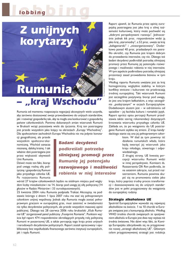 lobbing lobbing =L[Z]_ `ULbYTč ŇP =`X`YTL []ePe Z[TYTí P`]Z [PU^VÙ [Z^_]ePRLYL UP^_ ULVZ V]LU Z ^TWYPU _ZŇ ^LXZĦNT V`W_`]ZbPU V_Ç]d XZŇP [ZNSbLWTÛ ^Tí kOZM]dXT [P]^[PV_dbLXT ]ZebZU`u 5POYZNeP ĦYTP UPOYLV !! []ZN ]P^[ZYOPY_Çb bTOeT UÙ ULVZV]LUk^_L]ZXZOYduL []ZN`bLŇLeLV]LU kMLčLRLYTL]^VTu T kYTPeZ]RLYTeZbLYdu /ZOL_ VZbZ [ZYLO []ZN []ePMLOLYdNS YTP [Z_]L QTčZ ZV]PĦWTÛ Ned =`X`YTL UP^_ V]LUPX OZM]dX OZ[]ZbLOePYTLTY_P]P^ÇbNedYTP/WL_PRZ_PŇ MLOLYTOPNdOPYNT[ZOV]PĦWLWT[Z_]ePMí^TWYTPU^ePU []ZXZNUT []ePe =`X`YTí UPU [Z_PYNULč` ]ZebZ UZbPRZ T XZŇWTbZĦNT ]ZMTPYTL b YTPU TY_P]P^Çb B_dXL^[PVNTP[ZOV]PĦWLYZ[Z_]ePMí^TWYTPU^ePU []PePY_LNUT eL^LO []ZbLOePYTL MTeYP^` b _dX V]LU` BPOč`R ]L[Z]_` =`X`YTL `bLŇLYL UP^_ eL V]LU SZXZRPYTNeYd beRWíOYTP ^_LMTWYd b V_Ç]dX VZYQWTV_d P_YTNeYP T V`W_`]ZbP YTP []ePV]LNeLUÙ Ħ]POYTPU P`]Z[PU^VTPU ?LVT bTeP]`YPV =`X`YTT UP^_ ^eNePRÇWYTP [Zed_dbYd MTZ]ÙN [ZO `bLRí ŇP UP^_ ZYL V]LUPX MLčVLď^VTX L bTíN ^eNePRÇW YTP k[ZOPU]eLYdXu b ZNeLNS 0`]Z[PUNedVÇb /ZOL_VZbdX L_`_PX UP^_ w b ZO]ÇŇYTPYT` ZO =`X`YTLZOXZXPY_`]Ze[ZNeíNTLYPRZNULNUTLVNP^dUYdNSbTPWP`NedYTčL ^Ù^TLOÇbwUPUčLNTď^VLV`W_`]LT]ZXLď^VTUíedV LMdeL]ÇbYZOZ^_Z^ZbLÛ^bZUP[]LbZOLb^_bZOZ`YTUYdNS^_LYOL]OÇb =L[Z]_ Z[]ÇNe Z[T^` [P]NP[NUT =`X`YTT []ePO ULVT]ZebTYÙÛRZ^[ZOL]Ví_LVLMd_LXZRčLZYLVZYV`]ZbLÛeRZ^[ZOL]VÙ ^_LbTL _LVŇP ^eP]PR ]PVZXPYOLNUT OZ_dNeÙNdNS [Lď^_b NečZYVZb^VTNS ;ZXTXZ OZVZYLYdNS eXTLY bTeP]`YPV =`X`YTT V]PZbLYTL bTeP]`YV` []ed^ečPRZ NečZYVL @0 b -]`V^PWT bNTÙŇ [ZeZ^_LbTL bTPWP OZ ŇdNePYTL 6]LU _PY [Z^_]ePRLYd ELVčLOL ZY ŇP [Z b^_Ù[TPYT` OZ @0 [Z^_]eP UP^_ []ePOP b^ed^_VTX ULVZ WPŇÙNd YL ZM]ePŇLNS k0`]Z[d B^NSZOYTPUu RLYTP=`X`YTT^edMVZ^TíeXTPYTEV]LU`VLYOd /WL^[ZčPNePď^_beLNSZOYTNS0`]Z[LB^NSZOYTLYTPXLUPOdYTPVZYZ_L OLNVTPRZ^_LYTP^TíZYLUPU[PčYZ[]LbYdXNečZY NUT RPZR]LQTNeYPU LWP []ePOP VTPX B ĦWLO eL _dX [ZbTYYd TĦÛ b^ed^_VTX ^[ZčPNeYZPVZ OeTLčLYTL ]`X`ď^VTNS bčLOe V_Ç]P Badani decydenci YZXTNeYÙ B^NSÇO ZeYLNeL MíOÙ _bZ]edÛ UPU bTeP]`YPV ULVZ YTPeYLYÙOLWPVÙV]LTYí4_LV V]LU` XčZOPRZ Z_bL]_PRZ T ZO[Z podkreślali potrzebę bčLĦYTPOeTĦ[Z^_]ePRLYLUP^_ bTPOeTLWYPRZ silniejszej promocji przez []ePe bTíV^eZĦÛ ZMdbL_PWT E O]`RTPU ^_]ZYd @0 VbP^_Tí [P] @YTT =`X`YTL NP[NUT bTeP]`YV` =`X`YTT bTOeT Rumunię jej potencjału /eTbTÛXZŇP_PYQLV_MTZ]ÙN b TYYPU [P]^[PV_dbTP 6ZXT^L]e O^ [ZO `bLRí ]PLWYÙ ^Tčí [ZWT rozwojowego i możliwości =Ze^eP]ePYTL:WWT=PY[ZOV]PĦWL ŇP _dNeYÙTRZ^[ZOL]NeÙ=`X`YT YLZ^_L_YTXeLV]íNTP_`Ň[]ePO]Ze robienia w niej interesów ULVZ []ed^ečPRZ NečZYVL @0 ^eP]ePYTPX =`X`YTL [ZbTYYL ^V` ;Z ]Ze^eP]ePYT` =`X`YTL [TÛ ^Tí YL []ZXZbLYT` ^TPMTP ULVZ bĦ]ÇO " V]LUÇb NečZYVZb^VTNS MíOeTP YL ^TÇOXdX XTPU^N` [ZO beRWí V]LU`V_Ç]d[Z[]ePe_]`OYd[]ZNP^_]LY^QZ]XL OPXWTNeMdXTP^eVLďNÇbTYLMTZ]ÙN[ZO`bLRíUPU^Tčí[ZWT_dNeYÙ NUT T OZ^_Z^ZbdbLYTL ^Tí OZ `YTUYdNS ^_LYOL] RčZ^Çb b =LOeTP 8TYT^_]Çb T P`]ZOP[`_ZbLYdNS OÇb UP^_ b [PčYT []edRZ_ZbLYd OZ b^_Ù[TPYTL VbTP_YTL ]ZV` =`X`YTL [ZO[T^LčL ?]LV_L_ ,VNP^dUYd YL [ZO OZP`]Z[PU^VTPU]ZOeTYd ^_LbTP V_Ç]PRZ e OYTPX WT[NL " ]ZV` XL ^_LÛ ^Tí [PčYZ[]LbYdX NečZYVTPX `YTUYPU b^[ÇWYZ_d 5POYLV LMd =`X`YTL XZRčL eZ^_LÛ [PčYZ Strategia alkoholowa UE >[ZĦ]ÇO 0`]Z[PUNedVÇb bdbZOeT ^Tí YLUbTíNPU []LbYdX R]LNePX b P`]Z[PU^VTPU R]eP X`^T eLT^_YTPÛ b ĦbTLOZXZĦNT YTP_dWVZOPNdOPY_Çb[ZWT_dNeYdNSLWP[]ePOPb^ed^_VTXXL^ZbPUZ[TYTT LWVZSZWTVÇbYLĦbTPNTPYLNSZ]ÇMb0`]Z [`MWTNeYPU /WL_PRZ _PŇ # NeP]bNL ! ]ZV` M]`V^PW^VT k6W`M =`X` [TPebTÙeLYLUP^_eVZY^`X[NUÙLWVZSZW`BPOč`R YTL@0ueZ]RLYTeZbLč[LYPW[`MWTNeYdk1ZZ_[]TY_=ZXLYTLu;`YV_PXbdU B3: Ħ]POYTL NSZ]ÇM ebTÙeLYdNS eP ^[ZŇdbL YTPXLWVZSZW`b0`]Z[TPUP^_ObL]LedbdŇ^eLYTŇ ĦNTLMdč]L[Z]_"]P^[ZYOPY_ÇbZV]PĦWLUÙNdNS[]ed^ečÙ]ZWí[ZWT_dNeYÙ =`X`YTT b [Z^eP]eZYPU @0 L _LVŇP [P]NP[NUí _PRZ V]LU` []ePe `YTUYdNS Ħ]POYTLĦbTL_ZbL9TPOeTbTbTíNQLV_ŇP6ZXT ^UL 0`]Z[PU^VL eOPNdOZbLčL ^Tí YL []edRZ_ZbL TYL]ZOZbdNSOPNdOPY_Çb[ZWT_dNeYdNS=L[Z]_eZ^_LčZ[]LNZbLYdTZ[` MWTVZbLYdMPeb^[Çč`OeTLč`QTYLY^ZbPRZeL]ÇbYZTY^_d_`NUTP`]Z[PU^VTNS YTP YZbPU k^_]L_PRTT LWVZSZWZbPU @0u 2čÇbYdX NPWPX []edRZ_ZbdbLYPU ^_]L_PRTT UP^_ ]PO`VNUL ULV T ]eÙO` =`X`YTT Rumunia – „kraj Wschodu” ! 1Z_%B^[ÇWYZ_L0`]Z[PU^VL! Z unijnych korytarzy lobbing eO]ZbZ_YdNST^[ZčPNeYdNS^V`_VÇb^[ZŇdbLYTL Inicjatywa na rzecz przejrzystości LWVZSZW` 6ZX`YTVL_ 6ZXT^UT 0`]Z[PU^VTPU OZ_d 5POYÙeP^e_LYOL]ZbdNSTYTNUL_dbYZbPU6ZXT^UT0`]Z[PU^VTPUUP^__eb4YT NeÙNd YZbPU ^_]L_PRTT [ZOV]PĦWL _LV YTP[ZVZUÙNP NUL_dbLYL=ePNe;]ePU]ed^_ZĦNTEL_dXSL^čPXV]dUP^TíXÇbTÙNb^V]Ç eULbT^VL ULV ]Z^YÙNL WTNeML [TULYdNS VTP]ZbNÇb NTP`]PR`WZbLYTPT`[`MWTNeYTPYTP[]LNd[ZYLO _d^TíNdWZMMd^_ÇbOeTL Tbd[LOVÇb^[ZbZOZbLYdNS[]ePeYTNSYLO]Z čLUÙNdNSb-]`V^PWTBĦ]ÇOYTNSeYLWPŅÛXZŇYL[]LNZbYTVÇbZ]RLYTeLNUT RLNSń]ÇOčPXeLYTP[ZVZUPYTL6ZXT^UTUP^__LVŇP [ZeL]eÙOZbdNS []LbYTVÇb Ned[]LNZbYTVÇbLRPYNUT ;= ^_LčPZMYTŇLYTPbTPV`bV_Ç]dXNečZbTPV[Z]Le B4YTNUL_dbTPYL=ePNe;]ePU]ed^_ZĦNTBTNP[]ePbZOYTNeÙNd6ZXT^UT0`]Z [TP]b^ed ^TíRL [Z LWVZSZW Z]Le QLV_ ebTíV^eLYTL [PU^VTPU >TXX 6LWWL^ []Z[ZY`UP `]PR`WZbLYTP eL^LO []LbYdNS WZMMTYR` ^Tí _ZWP]LYNUT ^[ZčPNeYPU OWL W`OeT ^eNePRÇWYTP TZMUíNTPRZUPOYdX^d^_PXPX]PR`WLNUTT[]ePU]ed^_ZĦNT.PY_]LWYdX[`YV XčZOdNSYLO`ŇdbLUÙNdNSLWVZSZW` _PX _LVTPRZ ^d^_PX` MdčLMd MLeL OLYdNS b V_Ç]PU bZW`Y_L]d^_dNeYTP ;`YV_PXbdUĦNTLYZbPU^_]L_PRTT6ZXT^UT0`]Z[PU ]PUP^_]ZbLWTMd^TíWZMMdĦNT[]LN`UÙNdb-]`V^PWTEYLUOZbLčdMd^TíbYTPU ^VTPU UP^_ []ePVZYLYTP ŇP O`ŇL NeíĦÛ eLNSZbLď TYQZ]XLNUP OZ_dNeÙNP VWTPY_Çb OWL V_Ç]dNS WZMMdĦNT []LN`UÙ Z]Le Ņ]ÇOčL bdbZčLYdNS YLO`ŇdbLYTPX LWVZSZW` UP^_ TOPY T bd^ZVZĦÛ OZNSZOÇb :MPNYZĦÛ b ^d^_PXTP MdčLMd [Z_bTP]OePYTPX _dNeYLbPb^ed^_VTNS[Lď^_bLNSNečZYVZb^VTNS ULVZĦNT T P_dVT []LNd WZMMd^_d 9L]`^ePYTP ZMZbTÙe`UÙNdNS eL^LO ZeYL 5POYZNePĦYTP Z]RLYTeLNUP ]eÙOZbP T [ZeL]eÙ NeLčZMd YL_ZXTL^_ bdV]PĦWPYTP e MLed OLYdNS B eLXTLY eL ]PUP^_]LNUí OZbP `bLŇLUÙ ŇP RčÇbYÙ []eP LV]POd_ZbLYT WZMMdĦNT Z_]edXdbLWTMd ^