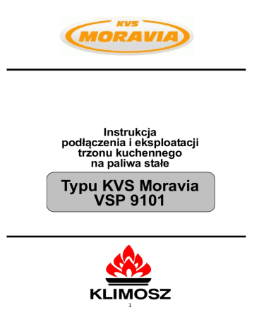 Instrukcja podłączenia i eksploatacji trzonu kuchennego na paliwa stałe Typu KVS Moravia VSP 9101 1 Znak słowno-graficzny jest znakiem zastrzeżonym w Polsce i Unii Europejskiej, stosowanie tego znaku do jakichkolwiek celów bez wcześniejszej pisemnej zgody Klimosz Sp. z o.o. jest zabronione. Produkcja lub wprowadzanie do obrotu handlowego urządzeń zbliżonych wyglądem do kotła KLIMOSZ® jest zabronione, jako czyn nieuczciwej konkurencji mogący wprowadzić w błąd Klientów. Treść niniejszej Instrukcji Obsługi i Instalacji Kotła jest własnością Klimosz Sp. z o.o., jakiekolwiek powielanie, kopiowanie, publikowanie treści niniejszej Instrukcji bez wcześniejszej, pisemnej zgody Klimosz Sp. z o.o. jest zabronione Prawa do materiałów tekstowych, graficznych, multimedialnych zamieszczonych na stronie www.klimosz.pl oraz w materiałach technicznych, ich przekładach, materiałach szkoleniowych i promocyjnych Klimosz Sp. z o.o. należą do Klimosz Sp. z o.o. a ich kopiowanie, rozpowszechnianie i publikacja w jakikolwiek sposób bez pisemnej zgody członka Zarządu Klimosz Sp. z o.o. jest pogwałceniem praw autorskich Klimosz Sp. z o.o. i jako przestępstwo podlega rozpatrzeniu przez sąd właściwy dla siedziby Klimosz Sp. z o.o. Producent zastrzega sobie prawo do zmian konstrukcyjnych kotła. 2 INSTRUKCJA OBSŁUGI I UTRZYMANIA Szanowny Kliencie Dziękujemy za zakup trzonu kuchennego na paliwa stałe. Podczas obsługi urządzenia należy przestrzegać wymienionych w niniejszej instrukcji zasad. Dla Państwa wygody i komfortu prosimy dokładnie przeczytać tę instrukcję i obsługiwać urządzenie wg podanych w niej zaleceń. Ważne informacje, wytyczne i zalecenia Do prawidłowego działania urządzenia, zapewnić wystarczający ciąg kominowy. Podczas rozpalania zabrania się stosować cieczy palnych lub przy ich pomocy podwyższać maksymalną moc urządzenia. Urządzenie nie może być stosowane do spalania odpadów, dozwolone jest stosowanie wyłącznie zalecanych paliw. Podczas eksploatacji drzwi popielnika muszą być zamknięte, a drzwi komory spalania mogą być otwierane tylko na czas dokładania paliwa czy rusztowania, tak aby spaliny nie wypływały poza komorę spalania. Popiół należy składować w niepalnych pojemnikach z pokrywą! Podczas usuwania gorącego popiołu należy zachować podwyższoną ostrożność. Należy dbać o bezpieczeństwo przeciwpożarowe! Uszkodzone urządzenia (niesprawne) nie mogą być używane! Nie przestrzeganie warunków eksploatacji może prowadzić do uszkodzenia niektórych części urządzenia. Zakazuje się jakiegokolwiek przeciążania urządzenia. Podczas pracy mogą pojawić się głośne stuki , które są spowodowane przez wewnętrzne naprężenia stali, zjawisko to zwykle po jakimś czasie całkowicie zanika (w zależności od częstotliwości ogrzewania). Wszystkie naprawy może wykonywać wyłącznie uprawniony do tego serwis. Wszystkie lokalne przepisy, wraz z przepisami które dotyczą norm krajowych i europejskich, muszą być dotrzymane. Należy stosować wyłącznie części zamienne zatwierdzone przez producenta. Zabrania się dokonywać napraw urządzenia przez osoby nieuprawnione. Obsługę urządzenia mogą prowadzić wyłącznie osoby dorosłe. 3 Dane techniczne– VSP 9101 Urządzenie VSP 9101 jest przeznaczone do spalania paliw stałych z załadunkiem okresowym i jest przeznaczone do gotowania w gospodarstwach domowych lub do ogrzewania pomieszczenia, w którym jest umieszczone, zgodnie z normą DIN EN 12815: 2004 .Urządzenie może być podłączone do komina z tyłu lub jednego z boków, lub od góry poprzez otwór w płycie grzewczej (rys. 1). Urządzenie nie jest przystosowane do pracy ciągłej, proces stałopalenia można realizować w trybie 10 godzinnym Urządzenie Nominalna moc cieplna tryb letní tryb zimowy Sprawność Średnia temperatura spalin Masowy przepływ spalin Średnie stężenie CO (przy O2 = 13%) Minimalny ciąg kominowy Wysokość płyty grzewczej Szerokość pieca Głębokość pieca Średnica wylotu spalin Wysokość do osi wylotu spalin Powierzchnia płyty grzewczej Zalecane paliwo Średnie zużycie drewna Ciężar VSP 9101 drewno węgiel 6 kW 6 kW 6 kW 6 kW 73,3 % 275 °C 8,3 g/s 0,11 % 12 Pa 850 mm 325 mm 620 mm 120 mm 700 ±0,5 mm 0,12 m2 drewno: rozmiar 200 – 265 mm 2 kg/h 100 kg Wymiary paleniska Szerokość x Wysokość x Głębokość (tryb letní) Szerokość x Wysokość x Głębokość (tryb zimowy) Ruszt, Szerokość x Głębokość (górny) Ruszt, Szerokość x Głębokość (dolny) Otwór zasypowy, Szerokość x Wysokość 190 190 185 140 192 Akcesoria Pogrzebacz Zaślepki 1 sztuka 1 zestaw 4 х 220 x 270 mm х 360 x 270 mm х 280 mm х 240 mm x 130 mm Opis – VSP 9101 1. Płyta grzewcza 2. Listwa maskująca 3. Drzwiczki paleniska 4. Dźwignia rusztu 5. Drzwiczki popielnika 6. Rozeta dopływu powietrza 7. Pojemnik na paliwo Rysunek 1 Górna płyta grzewcza wykonana jest ze stali. Obudowa urządzenia wykonana jest z tłoczonych, emaliowanych elementów stalowych. Elementy urządzenia podwyższające jego właściwości cieplne wykonane są z żeliwa i szamotu. Urządzenie może być podłączone do komina poprzez wylot z tyłu, wylot z prawego lub lewego boku, otwór w płycie grzewczej (rys. 1 i 5). Pokrywa* płyty grzewczej (*), nie będąca w wyposażeniu standardowym, na czas transportu pakowana jest za tylną ścianą urządzenia. Po rozpakowaniu urządzenia kołki zawiasów pokrywy należy umieścić w otworach w tylnej części ramy płyty grzewczej. (*) Pokrywa płyty grzewczej nie jest w zestawie, można ją dokupić na życzenie użytkownika. UWAGA: Producent zastrzega sobie prawo do wprowadzania drobnych zmian innowacyjnych lub technicznych, które nie mają wpływu na funkcjonowanie produktu. 5 Opis urządzenia Paliwo - drewno, brykiety drzewne, węgiel brunatny, brykiet z węgla brunatnego Ruszty Urządzenie wyposażone jest w dwa ruszty – górny 