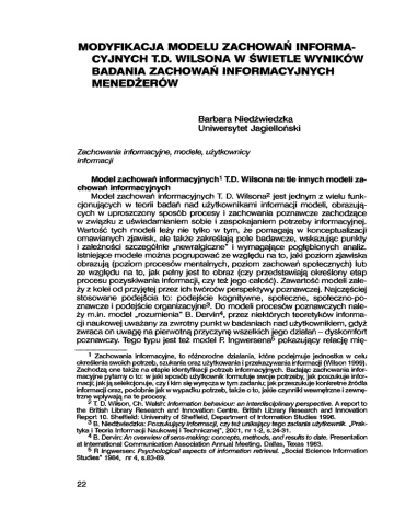 modyfikacja modelu zachowań informa cyjnych td wilsona w świetle