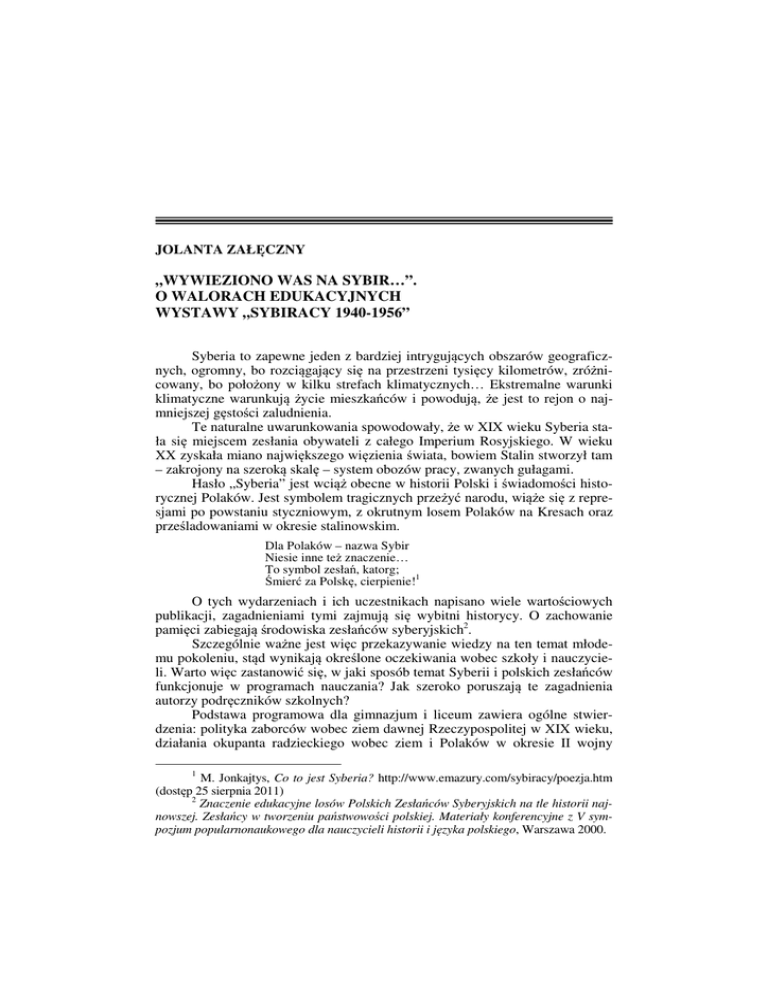 „wywieziono was na sybir…”. o walorach edukacyjnych