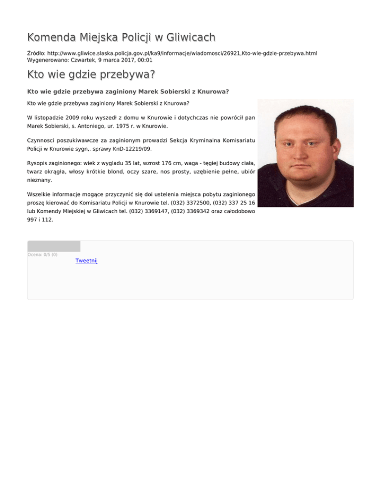 Komenda Miejska Policji w Gliwicach Kto wie gdzie przebywa?