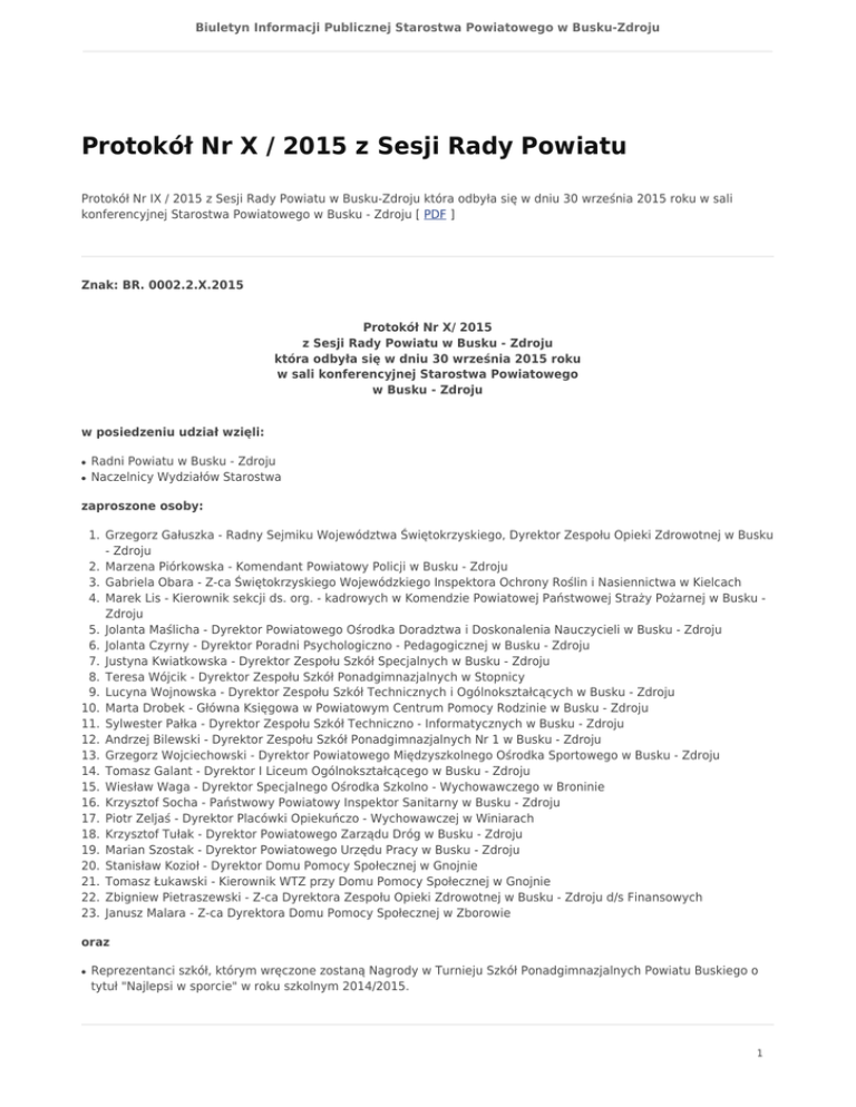 Protokół Nr X / 2015 z Sesji Rady Powiatu - BIP