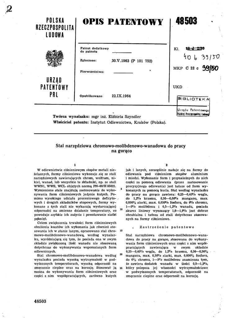 Twórca wynalazku: mgr inż. Elżbieta Szyndler