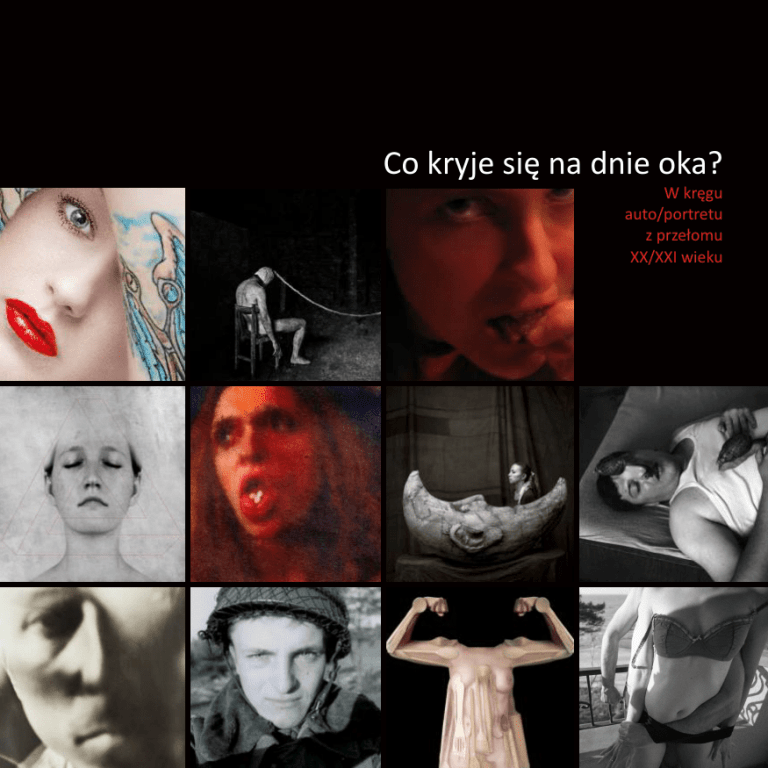 Co kryje siê na dnie oka? W krêgu auto/portretu z prze³omu XX/XXI wieku Co kryje siê na dnie oka? W krêgu auto/portretu z prze³omu XX/XXI wieku 27 lipca 2012, godz. 18.00 Galeria Sztuki Wozownia ul. Ducha Œw. 6, Toruñ wystawa czynna do 2 wrzeœnia 2012 kurator: Krzysztof Jurecki Galeria Sztuki Wozownia ul. Rabiañska 20, 87-100 Toruñ tel. 56 622 63 39 / fax 56 621 09 29 wozownia@wp. pl / www.wozownia.pl dyrektor: Anna Jackowska Organizatorem galerii jest samorz¹d województwa kujawsko-pomorskiego