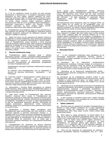 Ogólne Warunki Świadczenia Usług 1. Postanowienia Ogólne 2