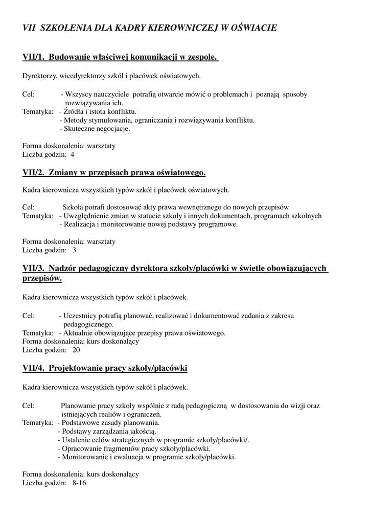VII SZKOLENIA DLA KADRY KIEROWNICZEJ W OŚWIACIE