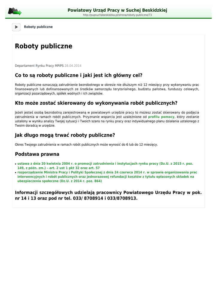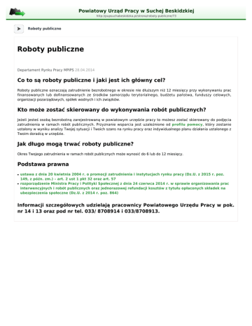 Roboty publiczne - Powiatowy Urząd Pracy