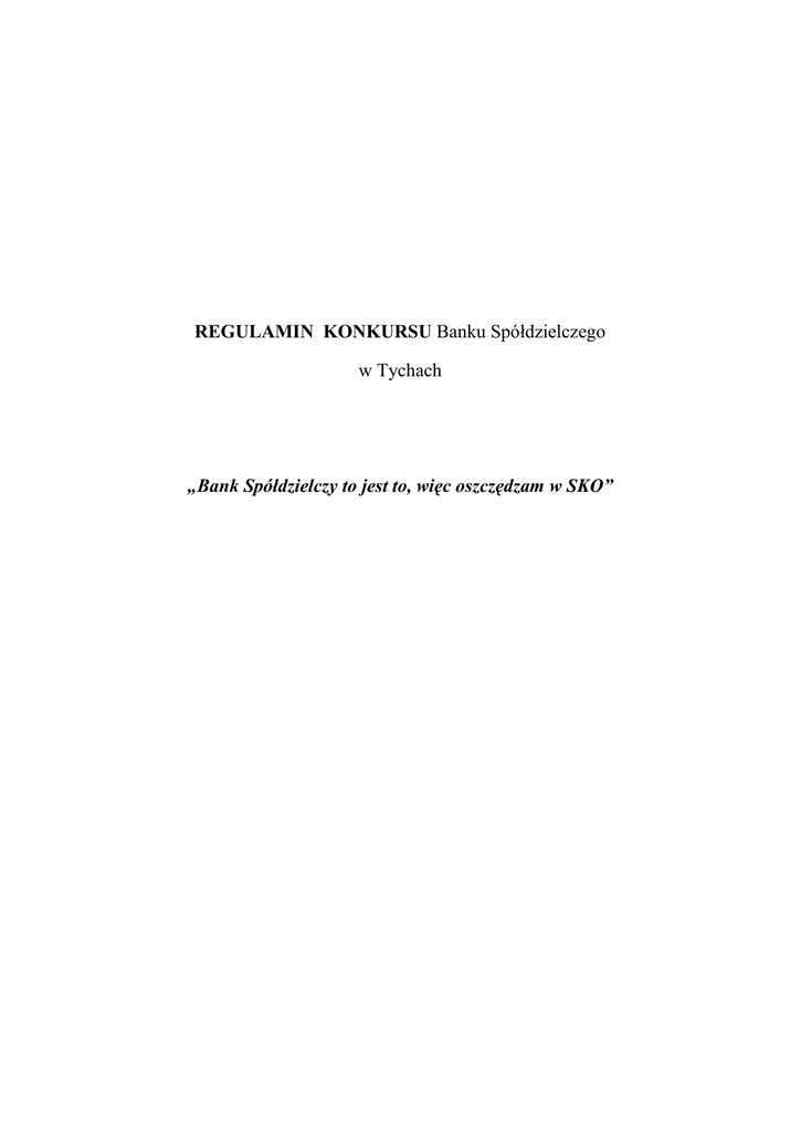 Regulamin Konkursu BS Tychy - Bank Spółdzielczy w Tychach